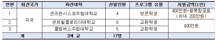 ※ 교환학생: 파견교 등록금 면제 / 방문학생: 파견교 등록금 납부